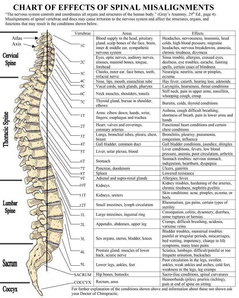 CHART OF EFFECTS OF SPINAL MISALIGNMENTS